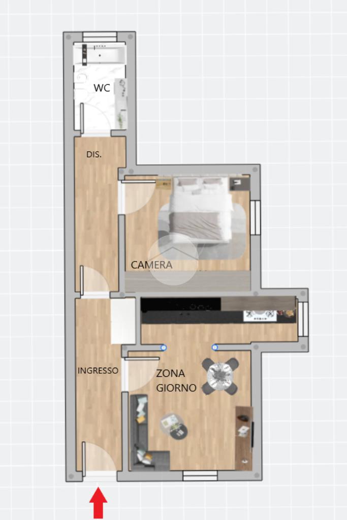 L’immobile si sviluppa con una disposizione interna razionale e funzionale. L’ingresso conduce al tinello, ambiente principale della casa, luminoso e ben proporzionato, utilizzabile sia come soggiorno sia come zona pranzo. Dal tinello si accede alla cucina separata, pratica e facilmente organizzabile.