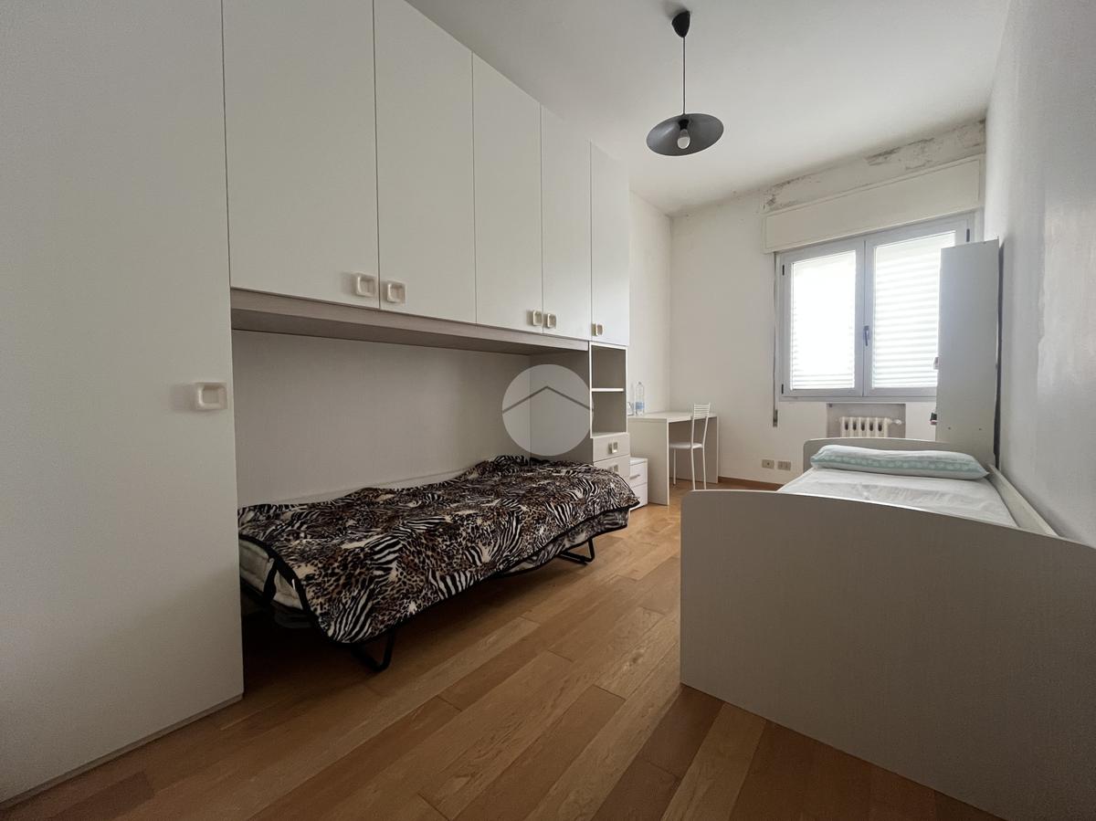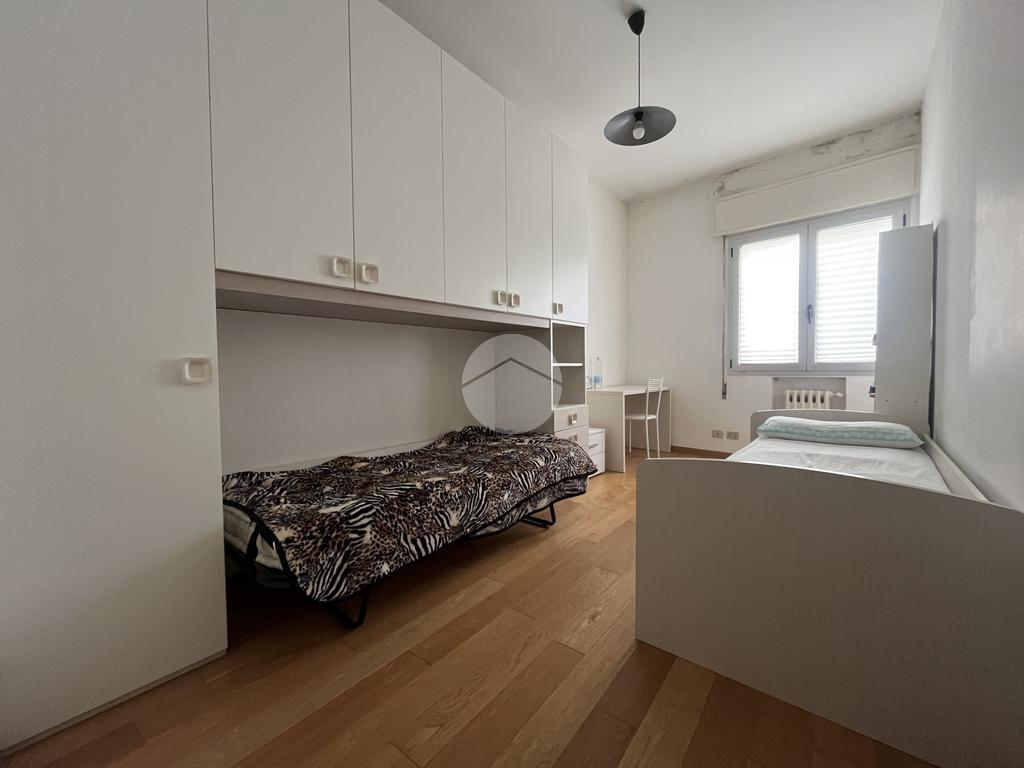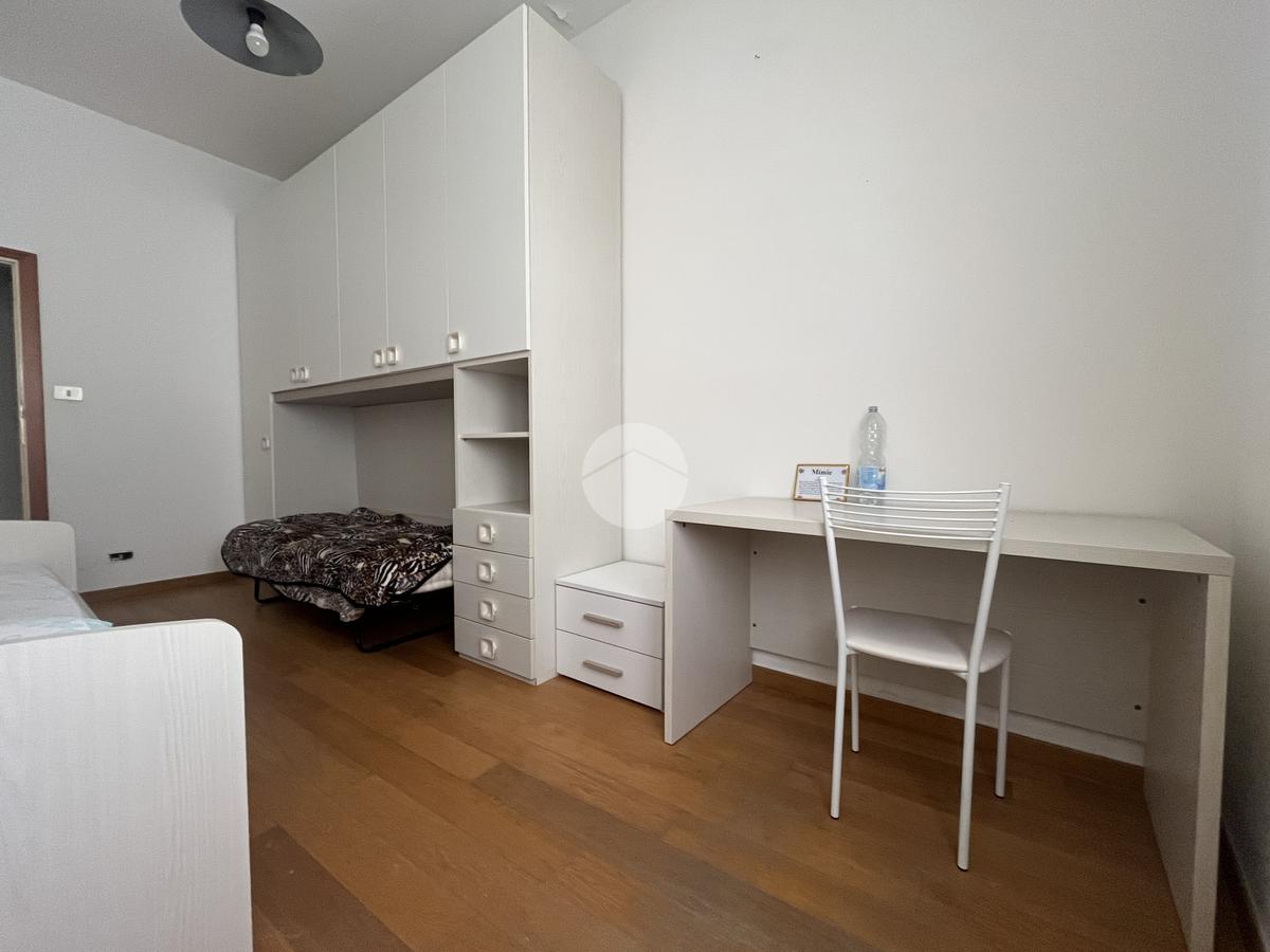 La zona notte comprende tre camere da letto tutte finestrate. La prima misura circa 16 mq, la seconda 12 mq e la terza, la più grande, circa 21,5 mq. Le dimensioni generose permettono un arredamento completo con letti, scrivanie e armadi, caratteristica particolarmente adatta alla locazione studentesca.