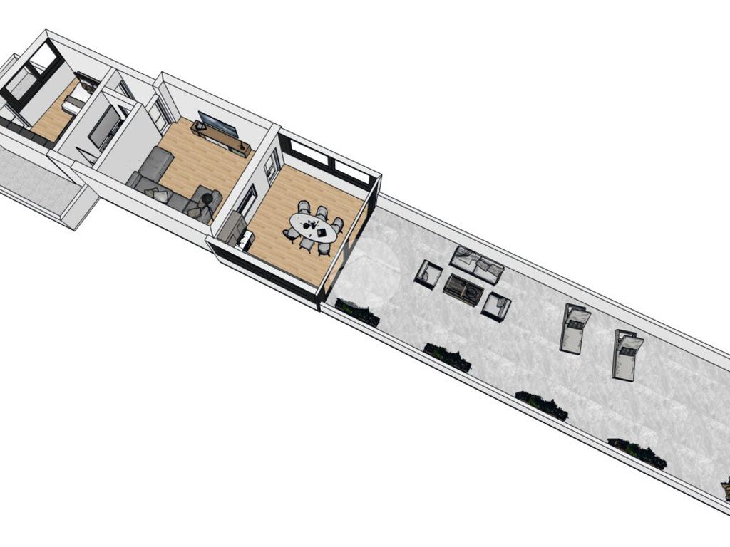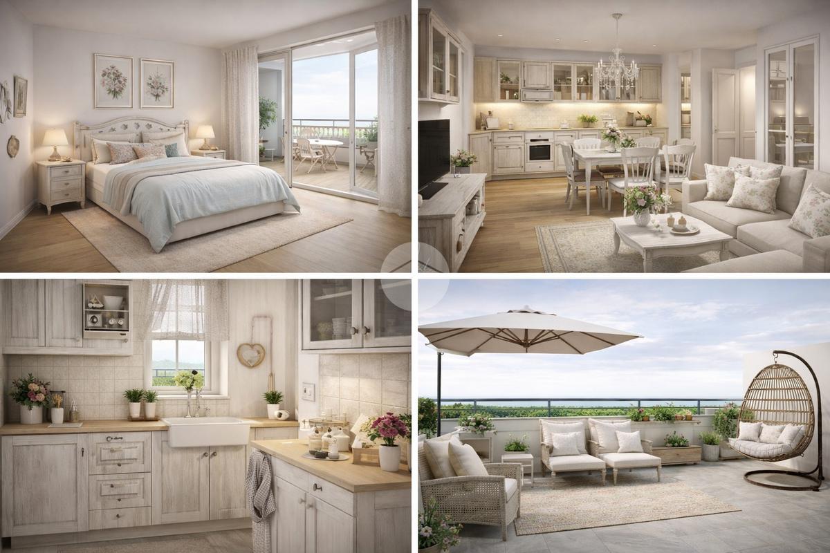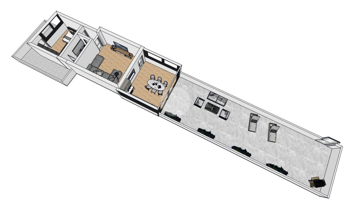 La disposizione interna risulta razionale e fluida, con una chiara separazione tra zona giorno e zona notte e un forte valore aggiunto rappresentato dall’ampio terrazzo, vero cuore dell’abitazione.
