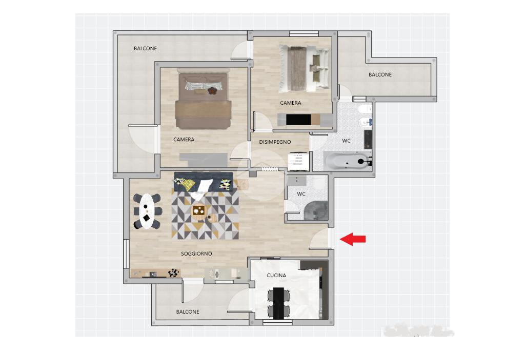 Uno dei punti di forza dell’immobile è la presenza di ampi balconi che seguono il perimetro dell’appartamento offrendo affacci multipli ottima esposizione e una continuità tra interno ed esterno rendendo la casa ariosa e luminosa durante tutto l’arco della giornata.
