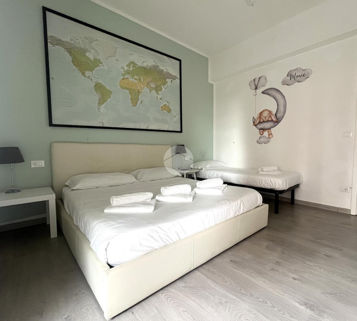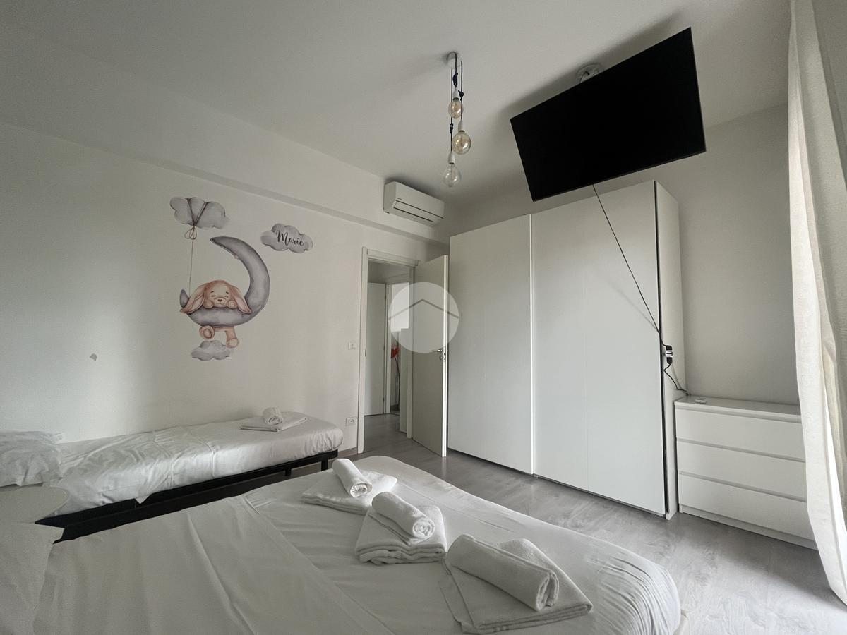 La zona notte comprende due camere da letto, una camera matrimoniale spaziosa e una camera doppia adatta come cameretta studio o stanza per gli ospiti entrambe servite da spazi esterni che garantiscono luminosità e comfort.