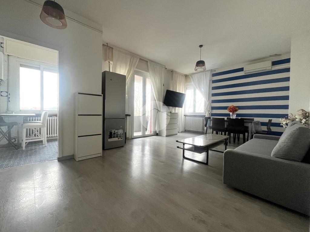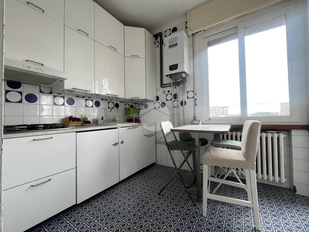 L’ingresso introduce direttamente al soggiorno di ampia metratura, circa 28 uno spazio luminoso e regolare nelle forme che permette una facile organizzazione dell’arredo con zona relax e zona pranzo e gode dell’accesso diretto ai balconi perimetrali che ampliano la vivibilità dell’ambiente. Adiacente al soggiorno si trova l’angolo cottura separato e ben dimensionato che consente una cucina funzionale con sfogo esterno ideale anche per l’aerazione naturale.