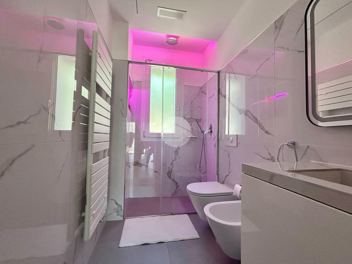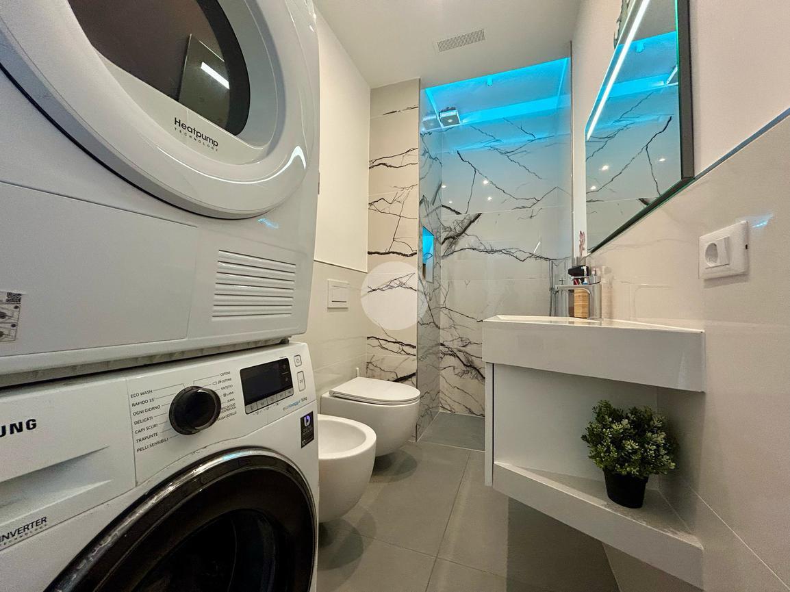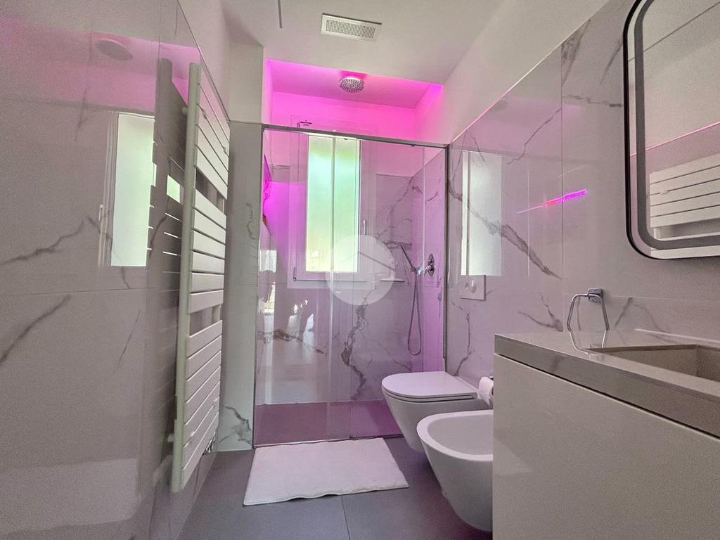 Completano l’interno due bagni moderni, entrambi eleganti e funzionali, dotati di sanitari sospesi e box doccia. Uno dei due è arricchito da una doccia con cromoterapia, per regalarsi quotidiani momenti di relax e benessere.