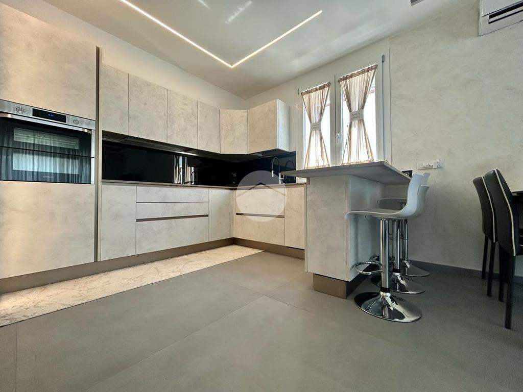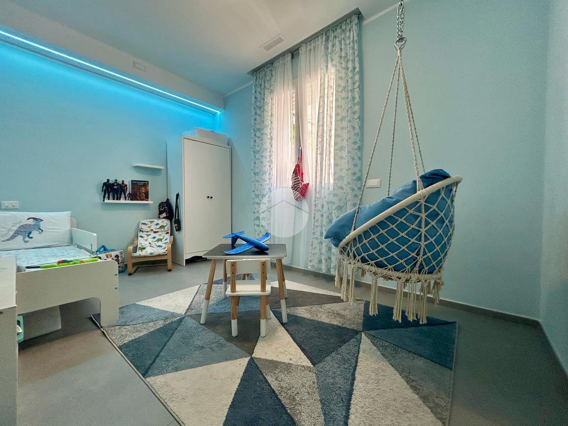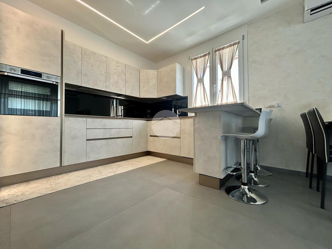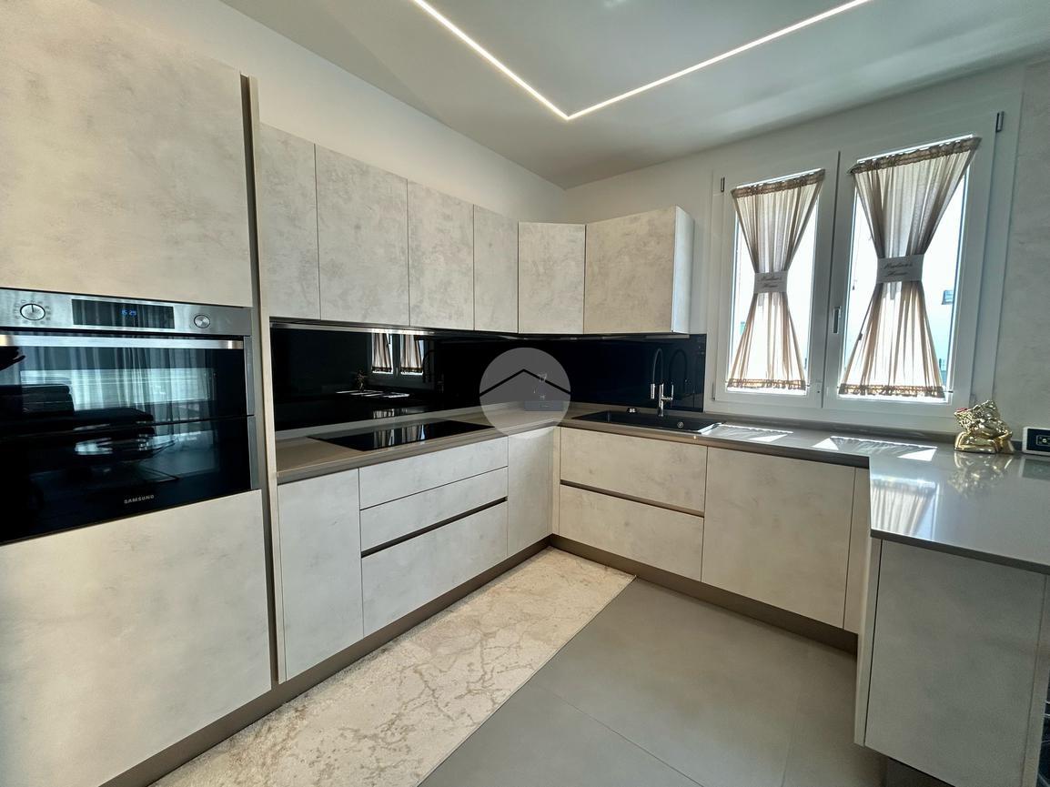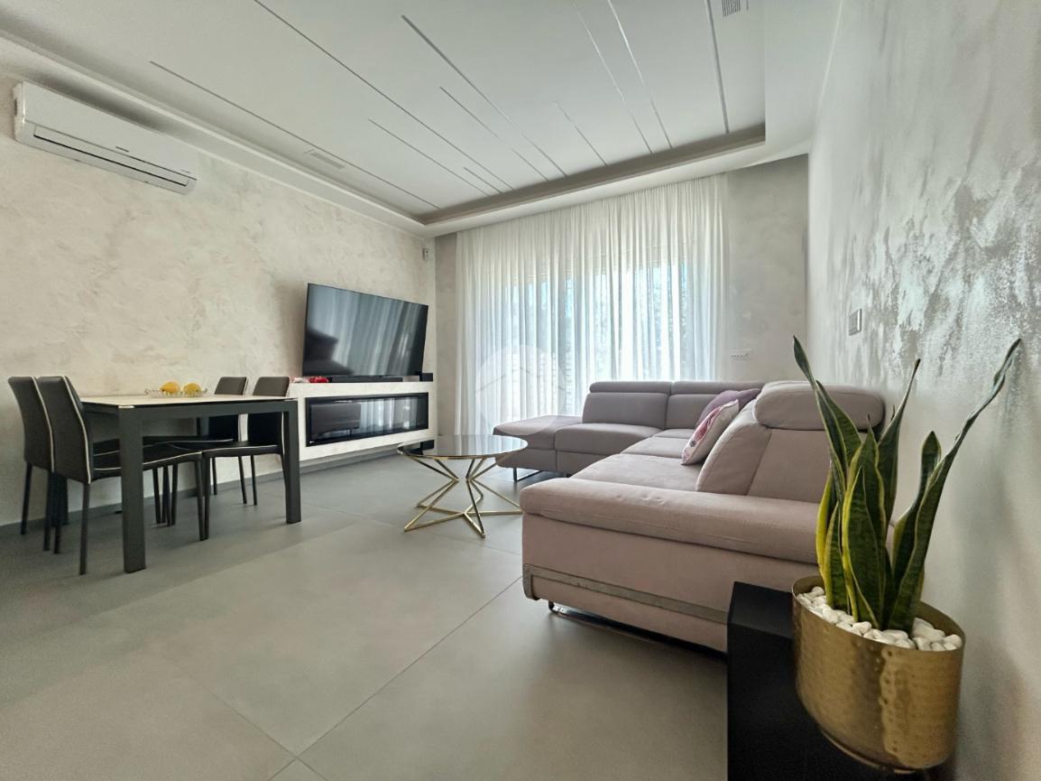 All’interno, l’abitazione si apre su un ampio e luminoso soggiorno con angolo cottura, cuore pulsante della casa, dove design moderno e funzionalità si incontrano. L’ambiente open space è stato progettato per garantire massima vivibilità e comfort: da un lato la zona relax, ideale per momenti in famiglia o con ospiti, dall’altro l’angolo cottura perfettamente attrezzato, con arredi su misura ed elettrodomestici di ultima generazione, pensato per chi ama cucinare in un ambiente pratico e accogliente.