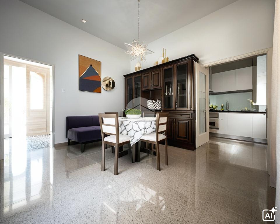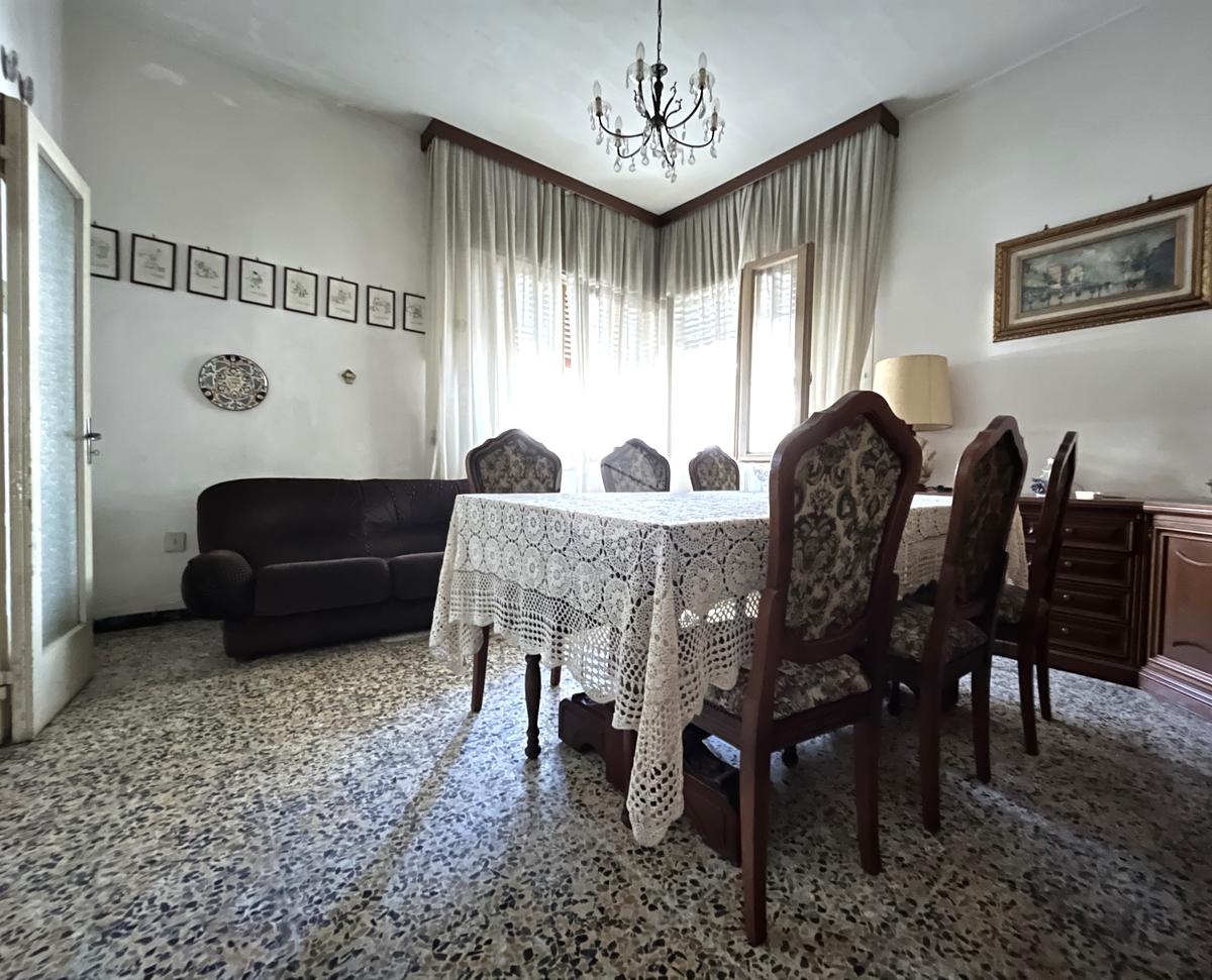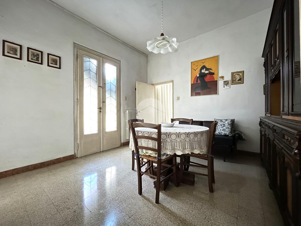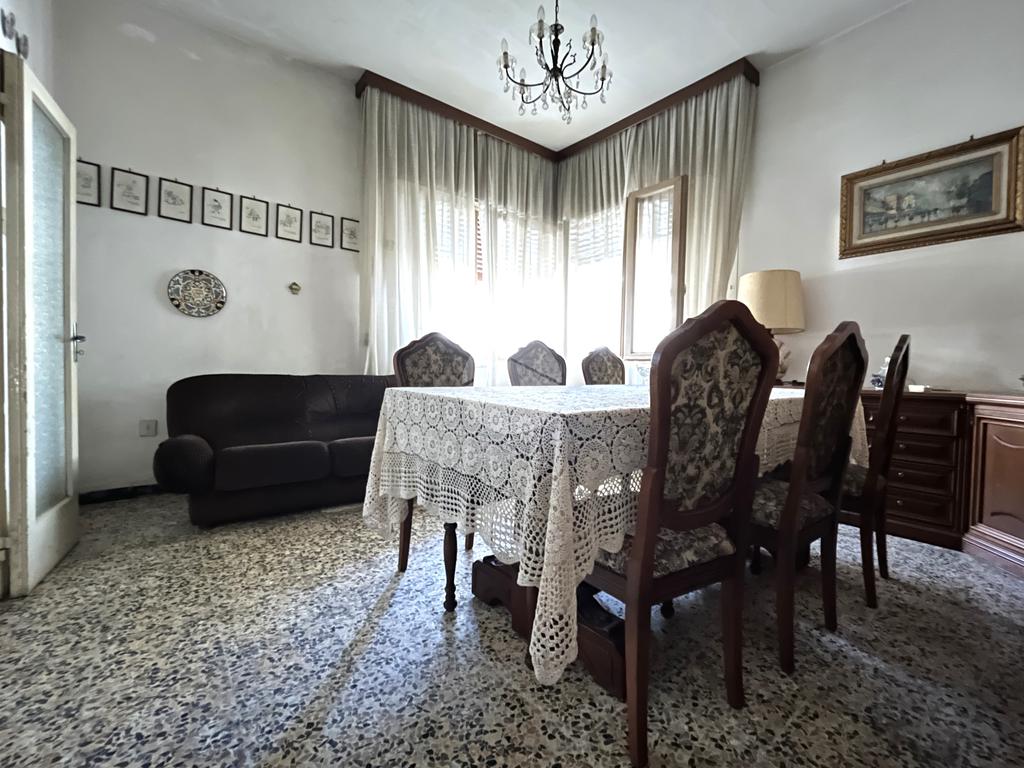La zona giorno prosegue verso il retro con una cucina abitabile, separata e dotata di finestra sulla corte interna privata, uno spazio esterno che può essere utilizzato come giardino, area relax o per mangiare all’aperto. Adiacente alla cucina si trova la sala da pranzo, che si affaccia anch’essa sulla corte, creando un ambiente conviviale con accesso facilitato all’esterno.