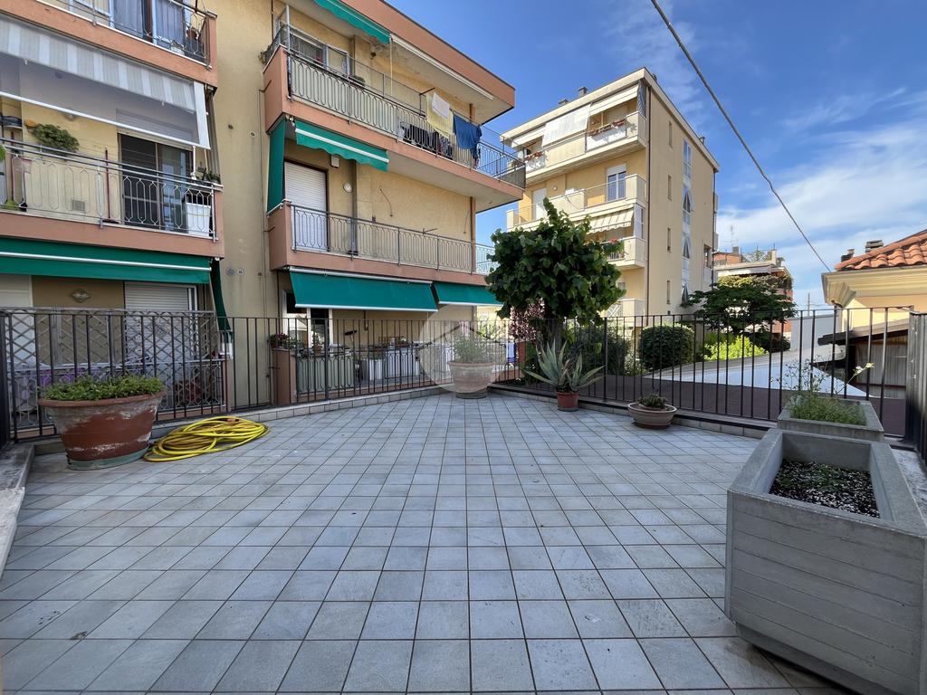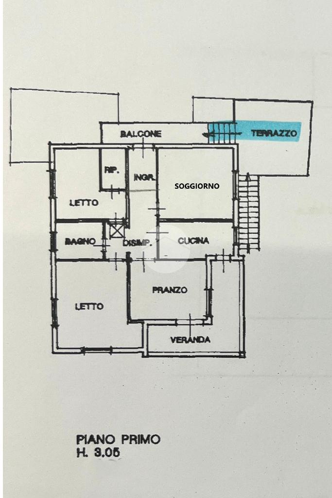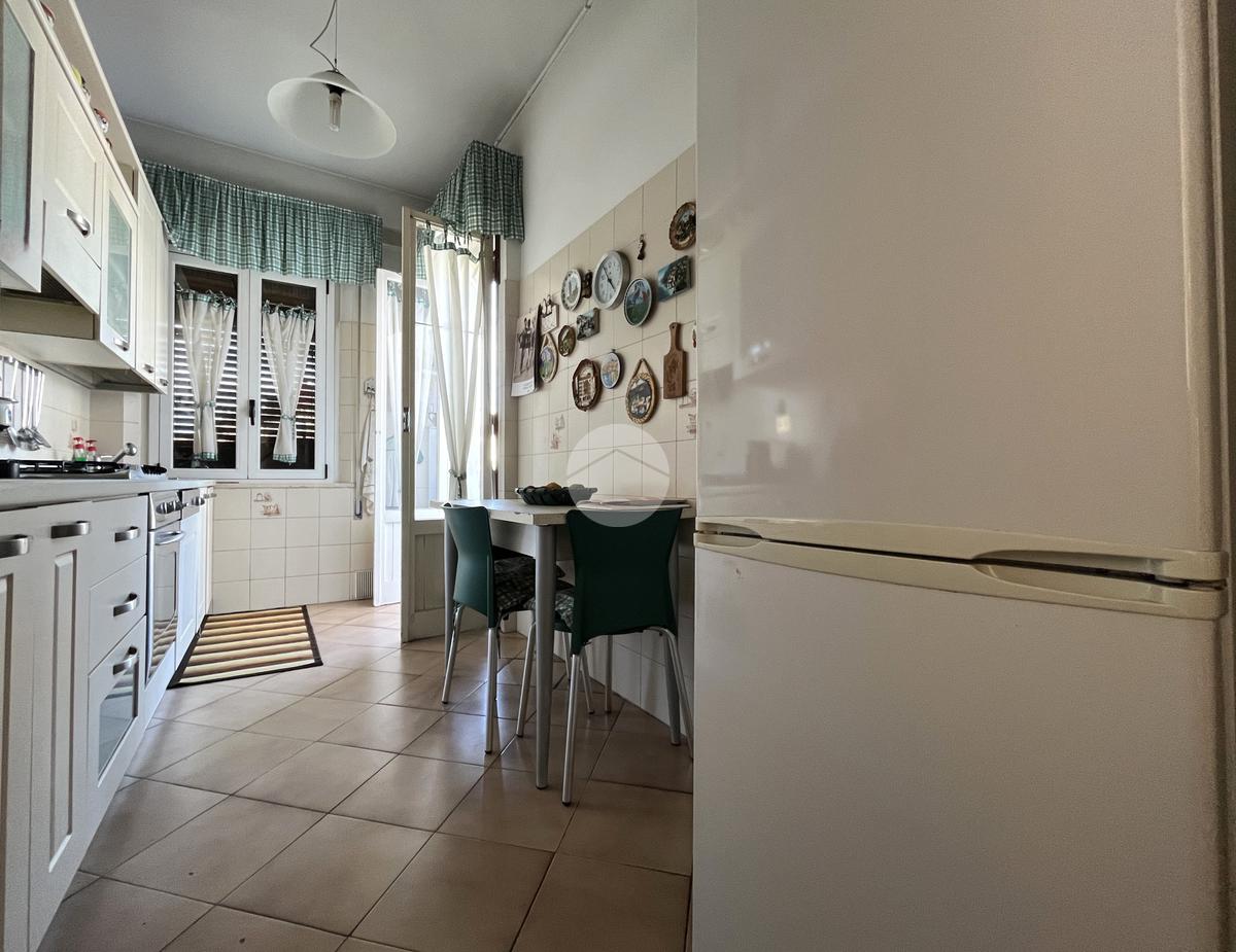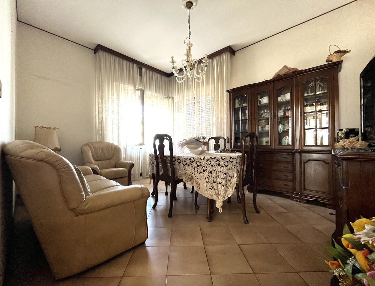 L'ingresso si apre su un disimpegno centrale che mette in comunicazione la zona giorno e la zona notte. Il soggiorno è spazioso e ben illuminato, con accesso diretto al balcone che si collega, tramite scala esterna, al grande terrazzo. Accanto al soggiorno si trova una cucina separata, abitabile e funzionale, perfettamente collegata alla sala da pranzo. Quest'ultima si affaccia su una veranda coperta, ideale per pranzi all’aperto o momenti di relax.