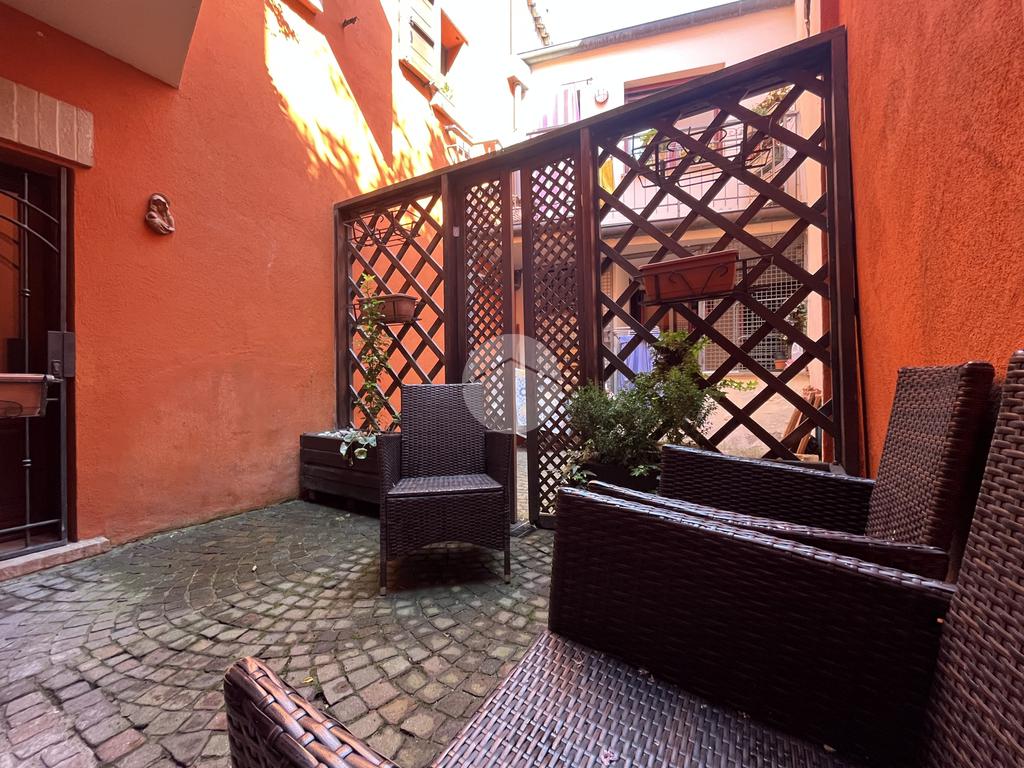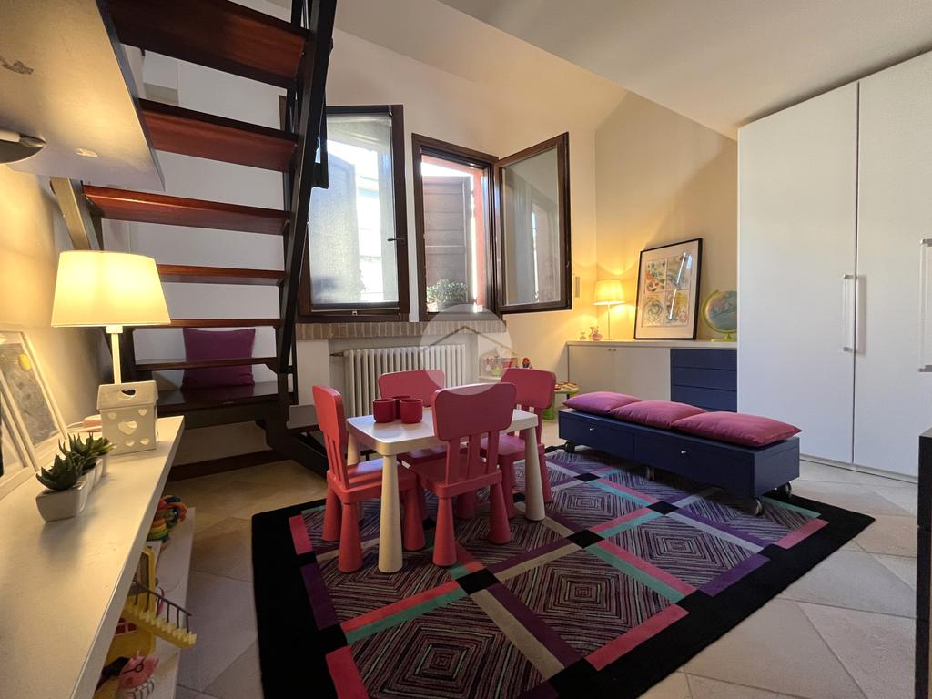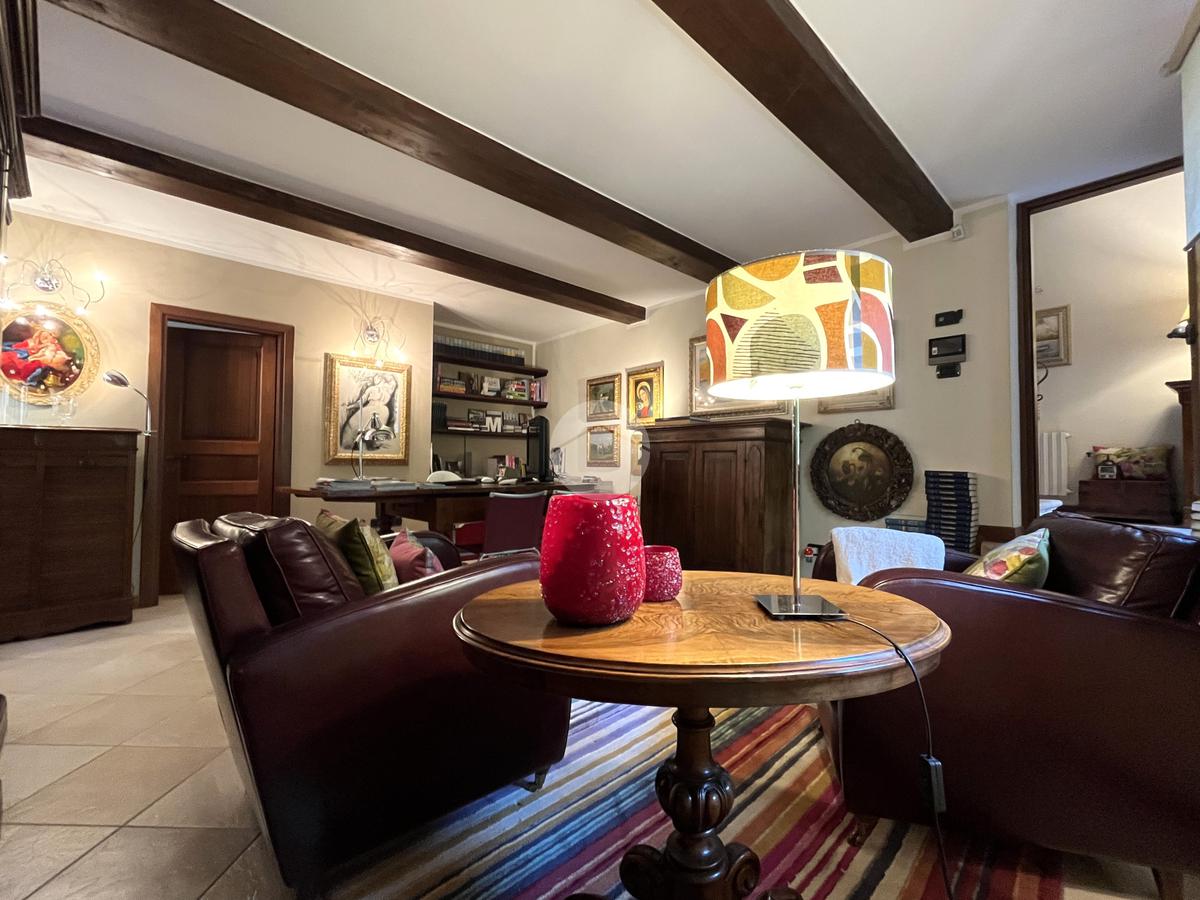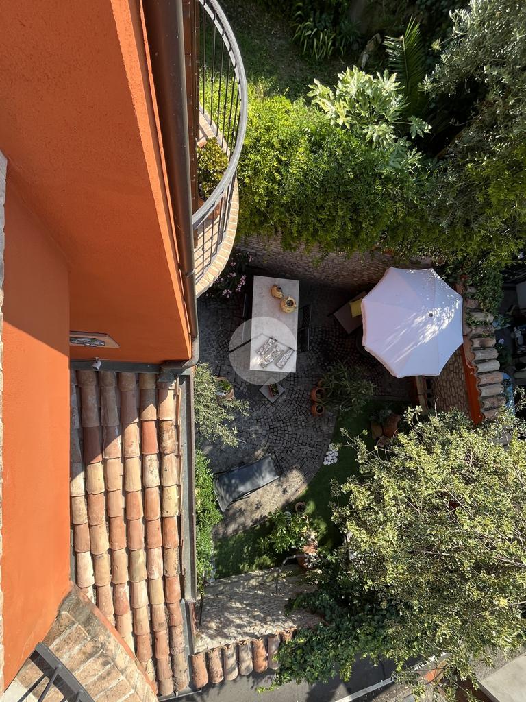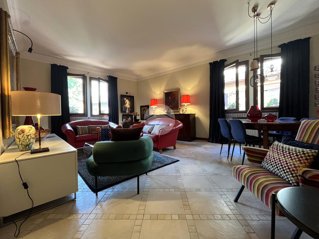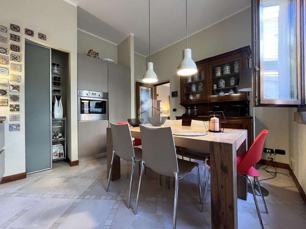 Al piano terra l’ingresso si apre verso il giardino laterale, uno spazio verde che crea una piacevole zona di accoglienza e permette di vivere l’esterno anche in un contesto storico. Varcata la soglia, si accede a un ambiente studiato per essere versatile: uno studio con bagno privato, perfetto come ufficio professionale, stanza per ospiti o ambiente dedicato allo smart working. Sullo stesso livello si trova anche la lavanderia, dotata di accesso diretto alla corte interna, un’area esterna riservata che aggiunge praticità e permette di gestire le funzioni di servizio in maniera discreta. Completa il piano il garage collegato internamente, un elemento particolarmente prezioso in centro storico, dove gli spazi per la sosta sono limitati.