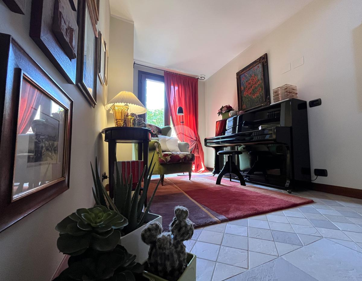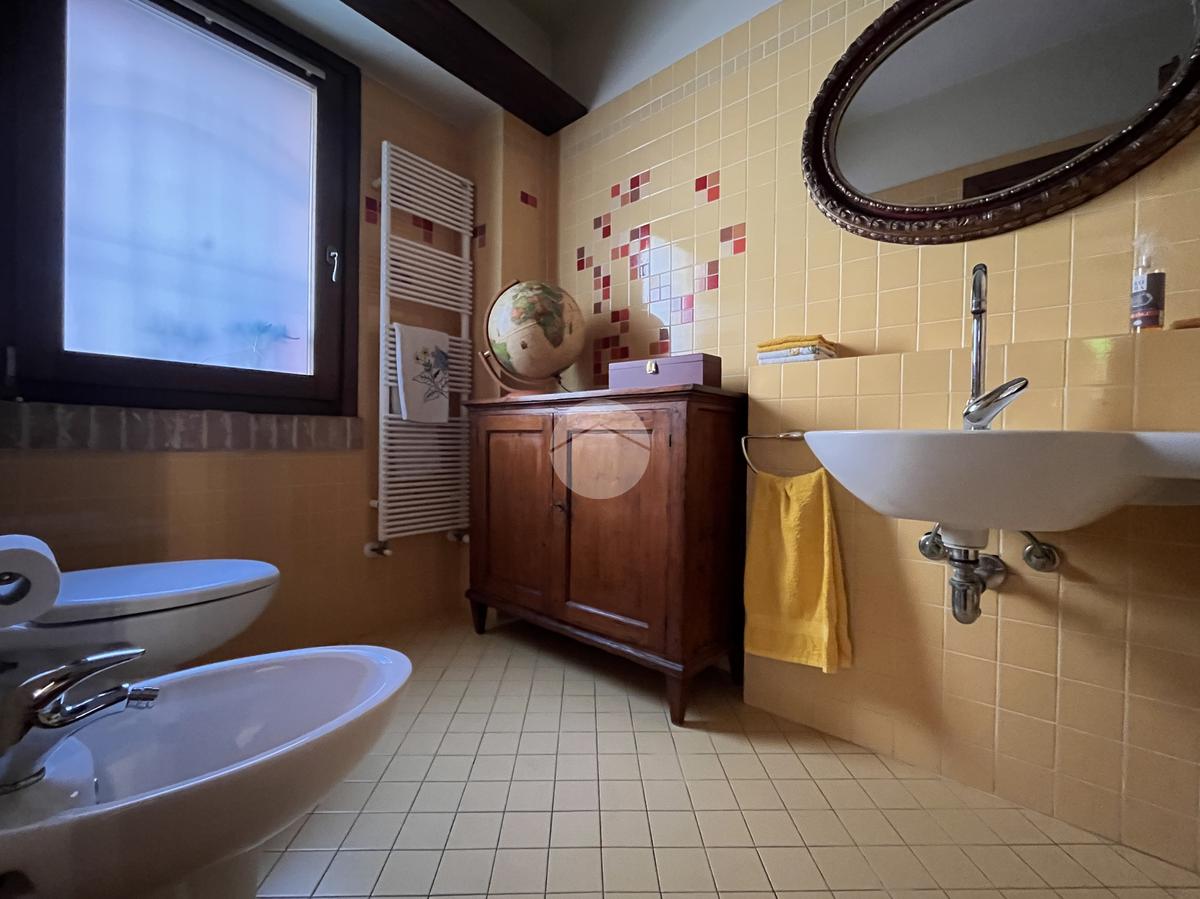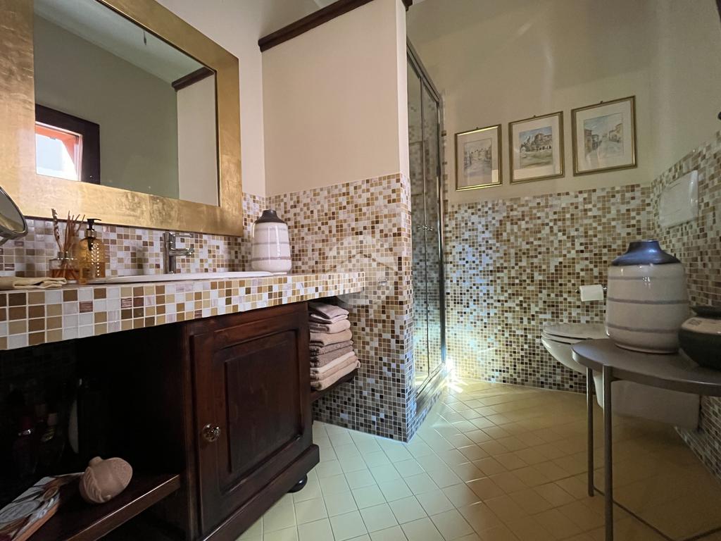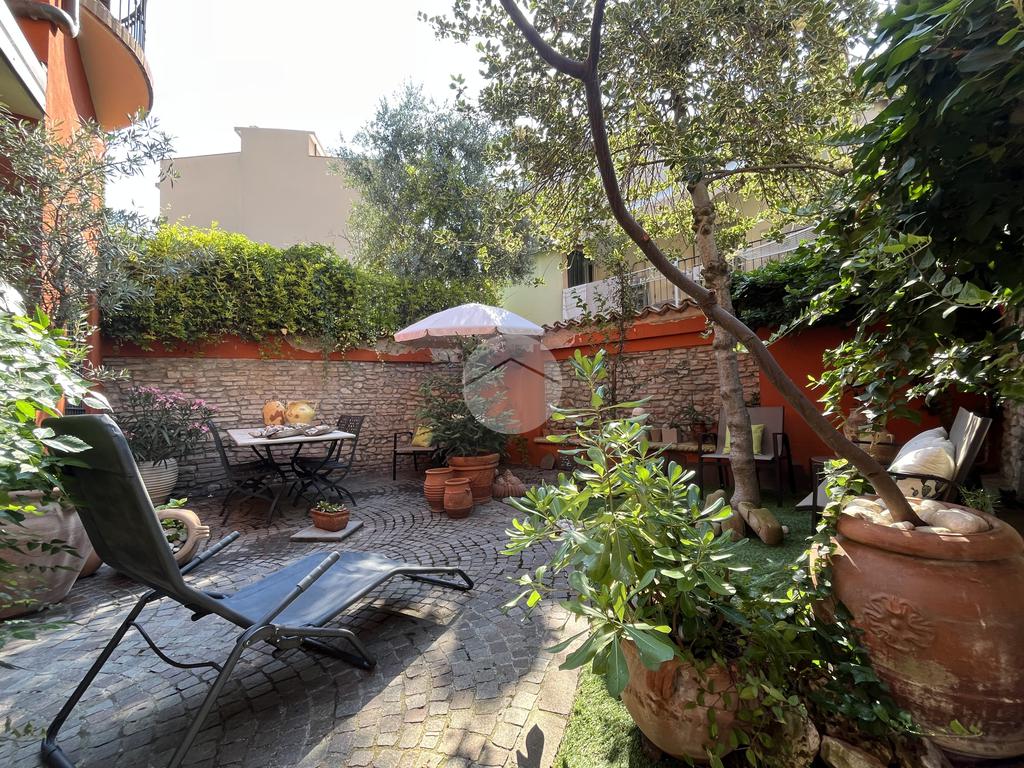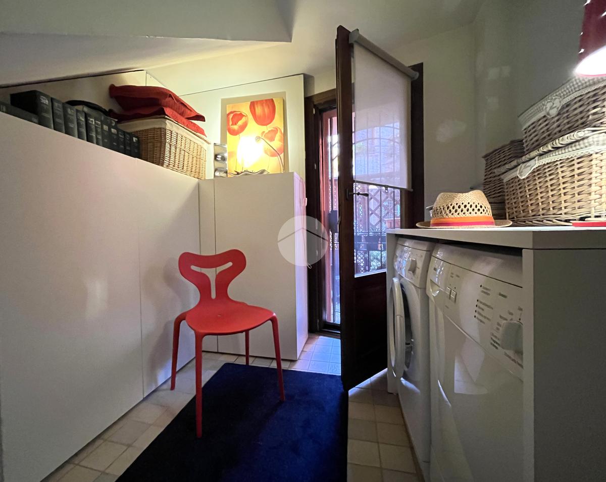 Al piano terra l’ingresso si apre verso il giardino laterale, uno spazio verde che crea una piacevole zona di accoglienza e permette di vivere l’esterno anche in un contesto storico. Varcata la soglia, si accede a un ambiente studiato per essere versatile: uno studio con bagno privato, perfetto come ufficio professionale, stanza per ospiti o ambiente dedicato allo smart working. Sullo stesso livello si trova anche la lavanderia, dotata di accesso diretto alla corte interna, un’area esterna riservata che aggiunge praticità e permette di gestire le funzioni di servizio in maniera discreta. Completa il piano il garage collegato internamente, un elemento particolarmente prezioso in centro storico, dove gli spazi per la sosta sono limitati.