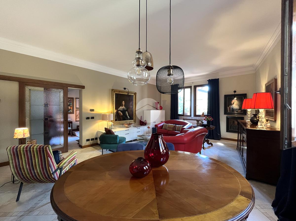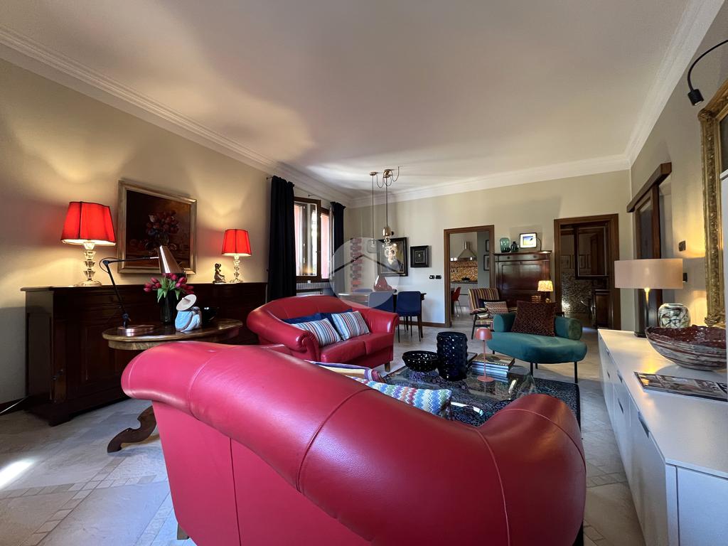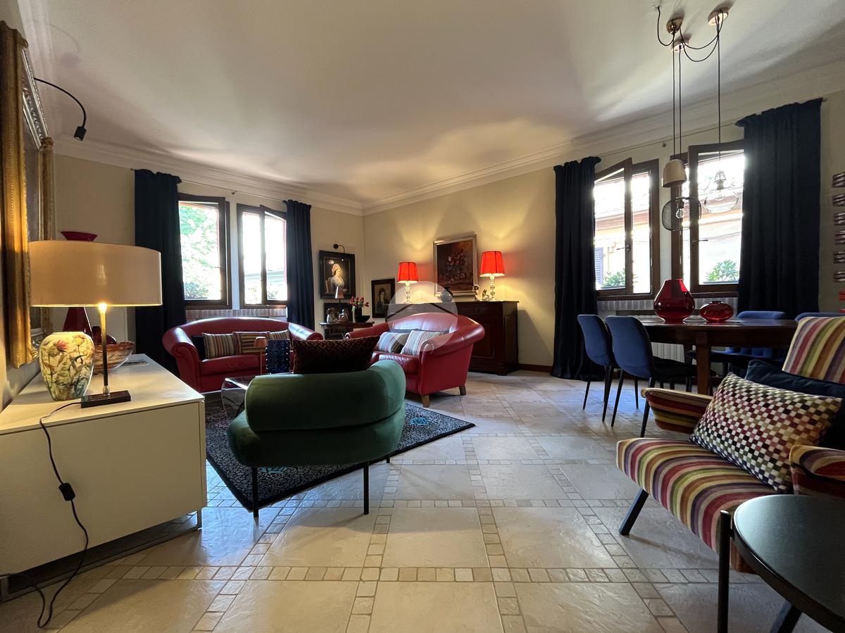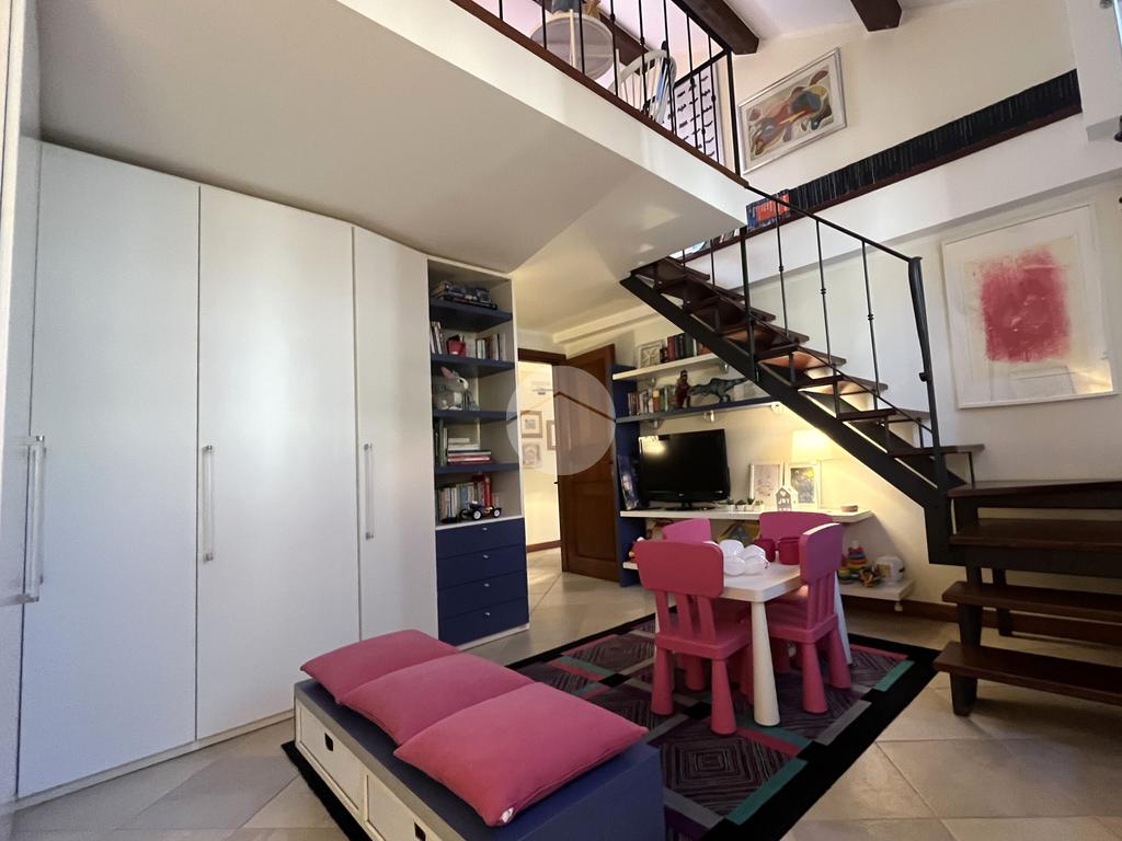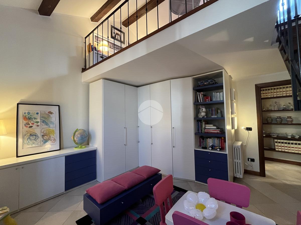 Al piano terra l’ingresso si apre verso il giardino laterale, uno spazio verde che crea una piacevole zona di accoglienza e permette di vivere l’esterno anche in un contesto storico. Varcata la soglia, si accede a un ambiente studiato per essere versatile: uno studio con bagno privato, perfetto come ufficio professionale, stanza per ospiti o ambiente dedicato allo smart working. Sullo stesso livello si trova anche la lavanderia, dotata di accesso diretto alla corte interna, un’area esterna riservata che aggiunge praticità e permette di gestire le funzioni di servizio in maniera discreta. Completa il piano il garage collegato internamente, un elemento particolarmente prezioso in centro storico, dove gli spazi per la sosta sono limitati.