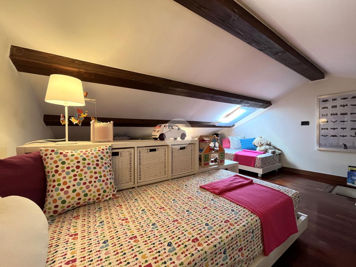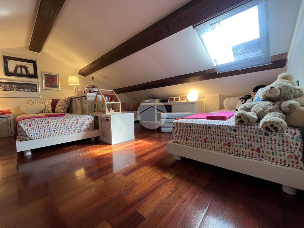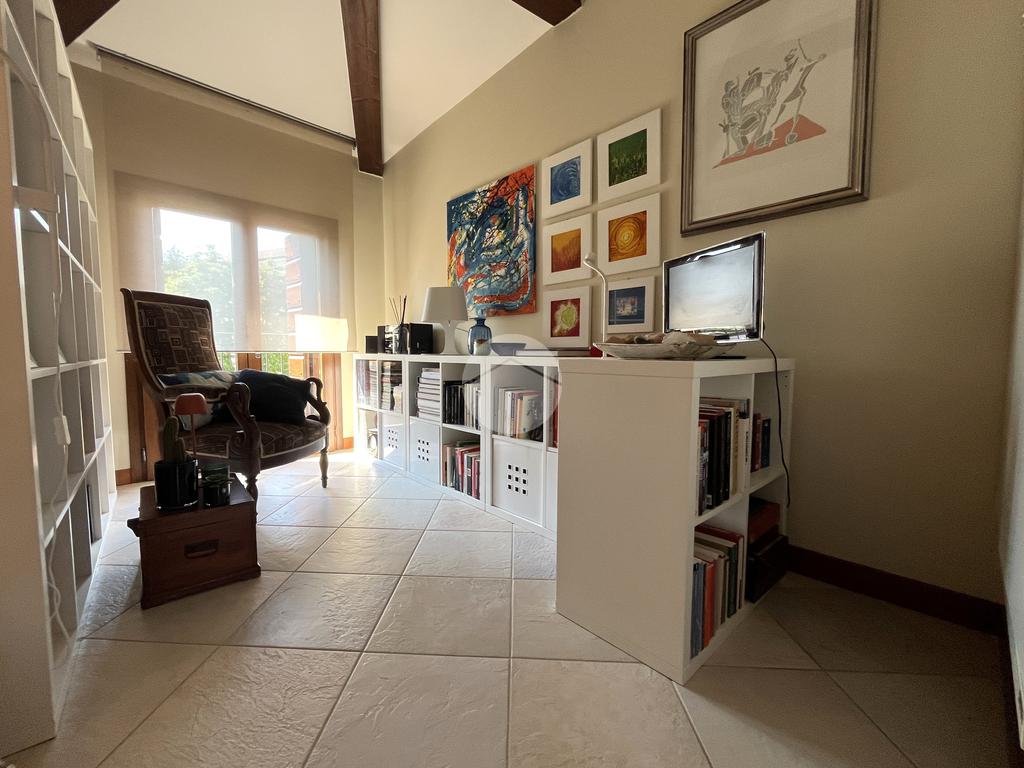 Il secondo piano ospita la zona notte. Qui si trovano tre camere da letto, di cui due matrimoniali e una ideale come cameretta, stanza per ospiti o secondo studio. I soffitti regolari e le altezze comode rendono gli ambienti confortevoli e facilmente arredabili. Il bagno principale del piano si trova in posizione centrale, accessibile a tutte le stanze. A completamento dello spazio notte è presente inoltre un secondo studio o ripostiglio, utile come ambiente aggiuntivo per lavoro, hobby o armadiatura, e un pratico disimpegno che collega armoniosamente tutti gli ambienti.