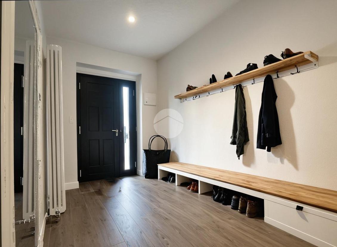 Il piano terra è stato progettato in modo pratico e accogliente. L’ingresso è dotato di un comodo armadio guardaroba per cappotti e scarpe, soluzione ideale per mantenere ordine e funzionalità fin dall’accesso. Sempre su questo livello si trova la zona lavanderia dedicata, separata e ben organizzata ed il terrazzo che offre uno sfogo esterno riservato e vivibile.